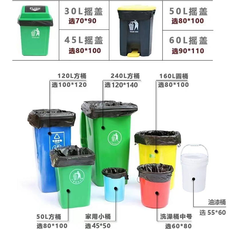 專(zhuān)業(yè)生產(chǎn)大號(hào)垃圾袋、特大號(hào)垃圾袋、中小號(hào)平口垃圾袋等
